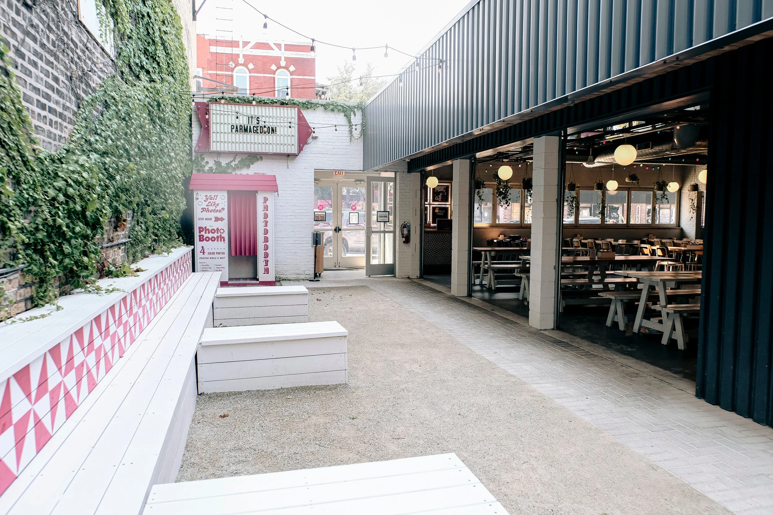 Parson’s Logan Square features a ping pong table on the patio, bleacher-style seating, garage doors, a semi-private pergola, and a photo booth. All locations provide unique options for groups ranging from 15 to 225 guests. We have semi-private options for groups of 15–50, and full restaurant buyout for up to 120 guests. Email crystal@parsonschickenandfish.com for pricing and availability.